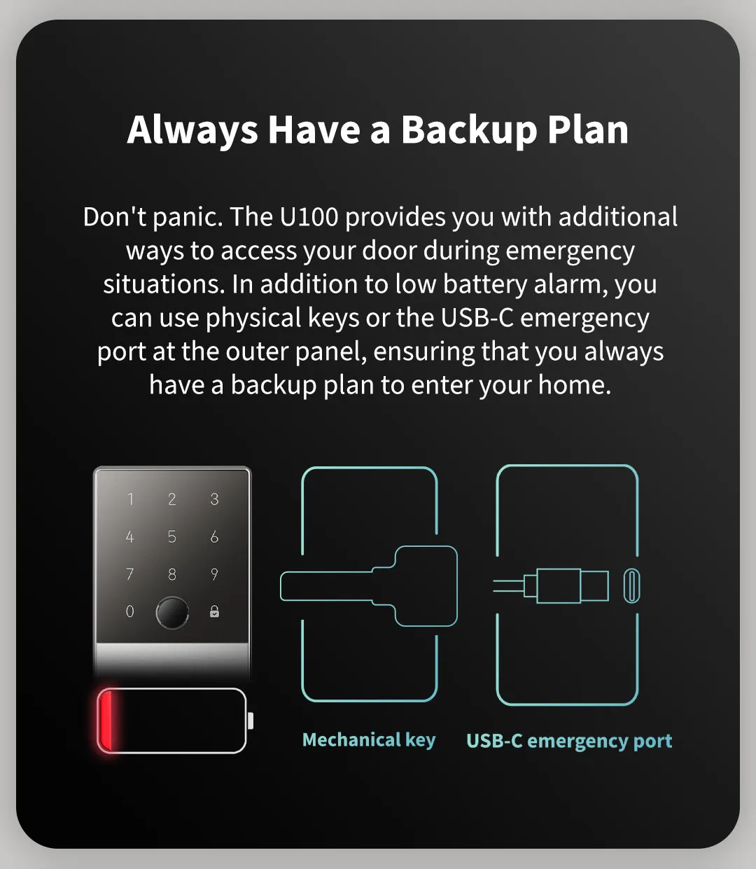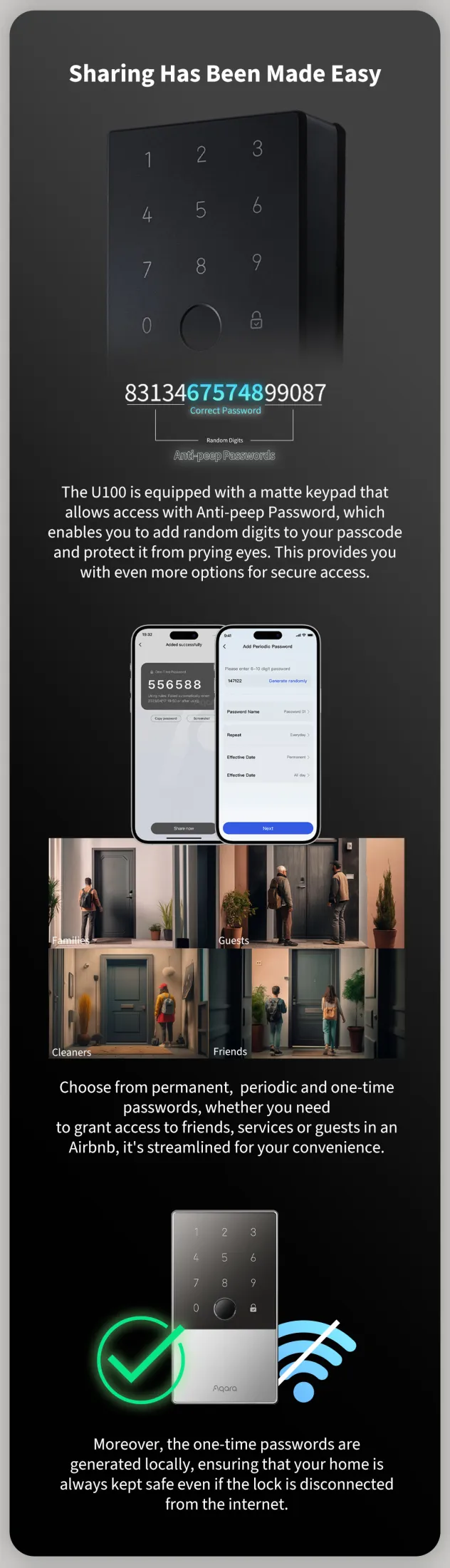The Aqara U100 Smart Door Lock combines cutting-edge technology with modern design to offer a highly secure and convenient solution for home access. Engineered for ease of use and robust security, this smart lock provides advanced features to enhance the protection and accessibility of your home.