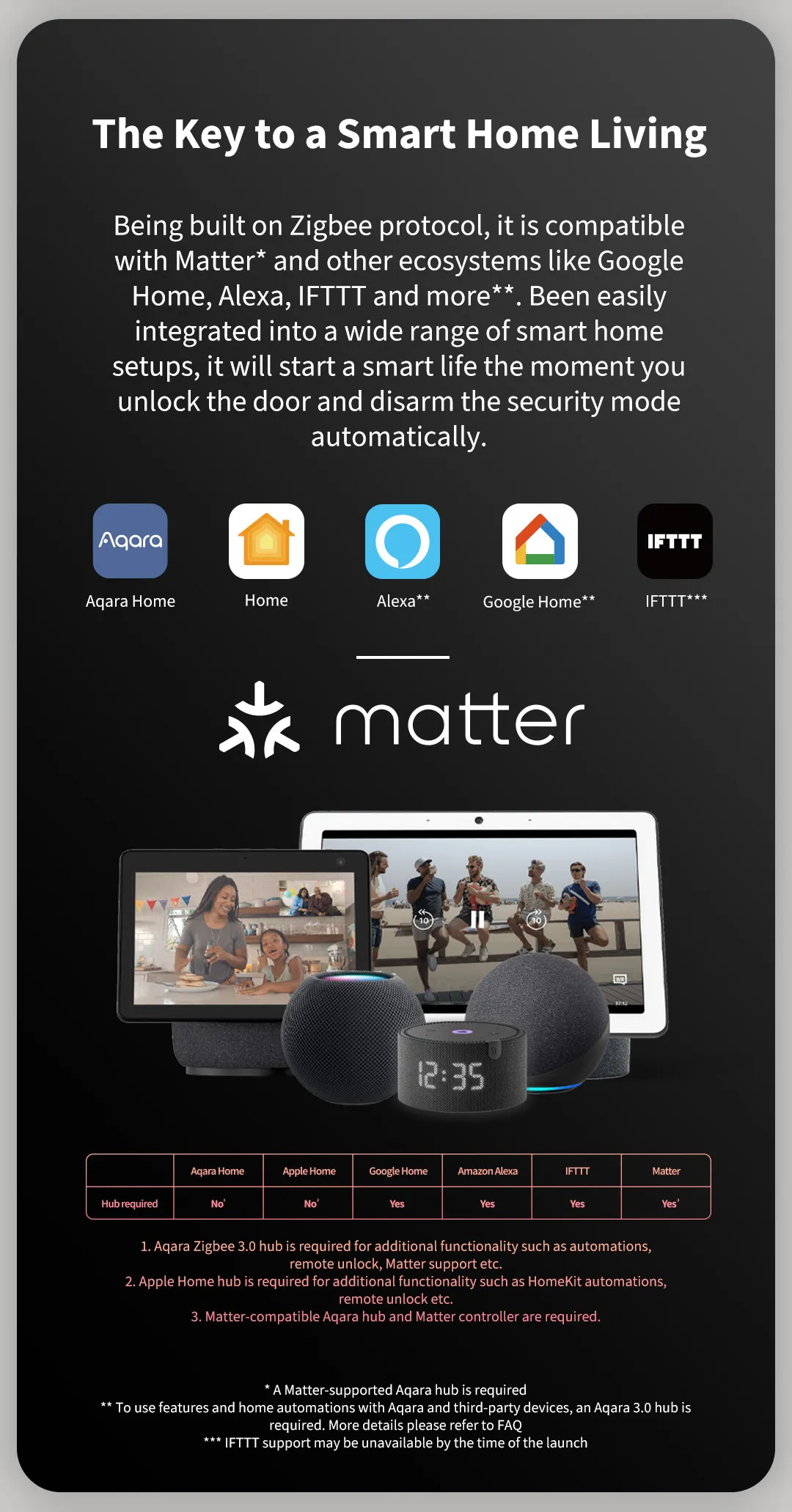 Aqara Smart door lock U100 Smart Dead Bolt (International Zigbee Edition), Apple Homekit , Google Home and Alexa