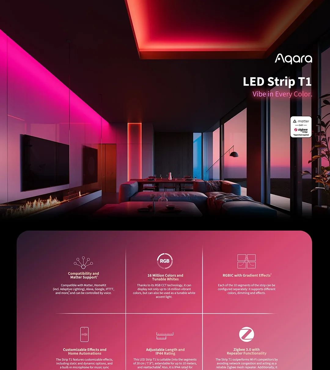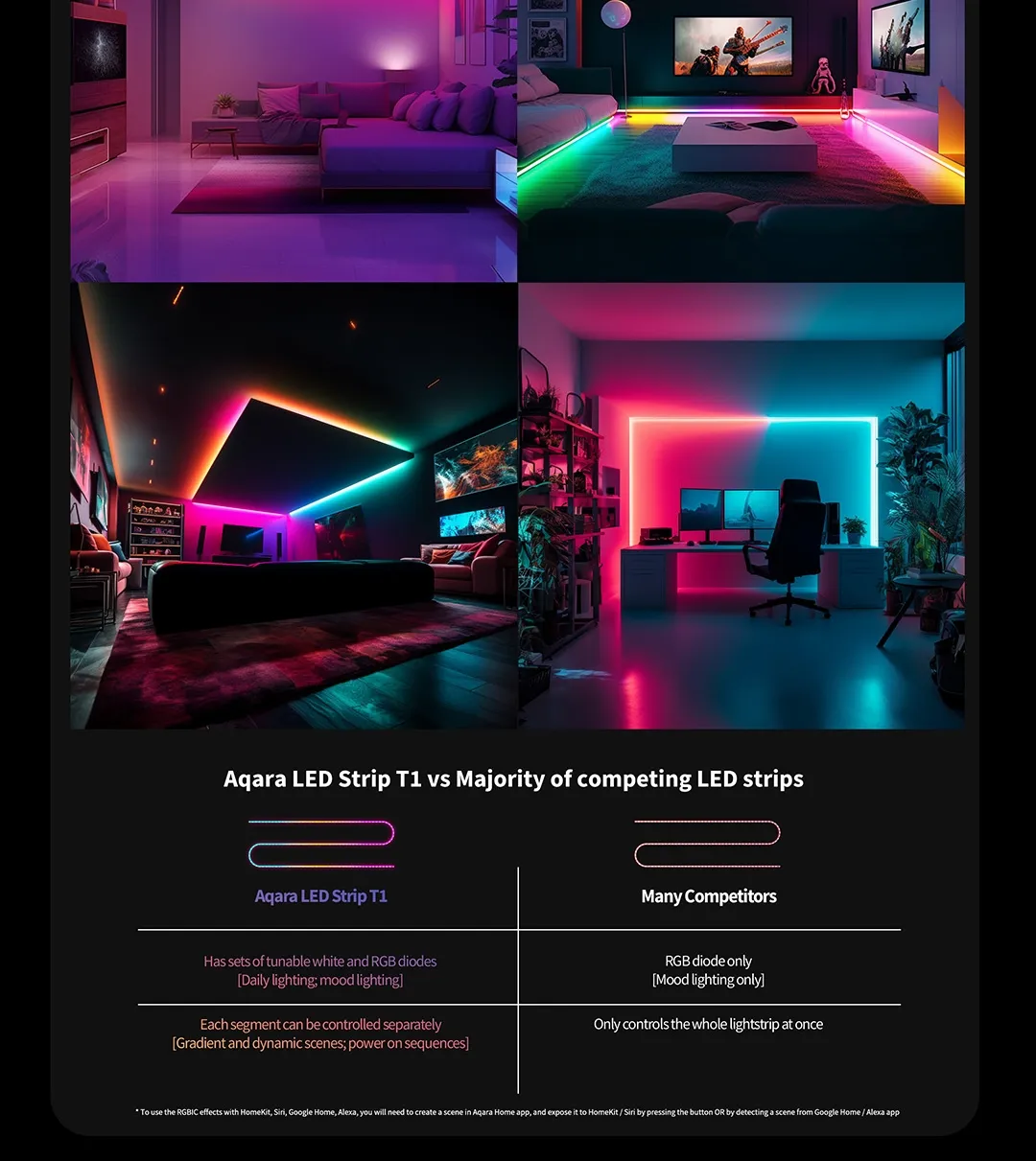 Aqara LED Strip T1 RGBIC (2m), Support Alexa, Apple Home and Google Home