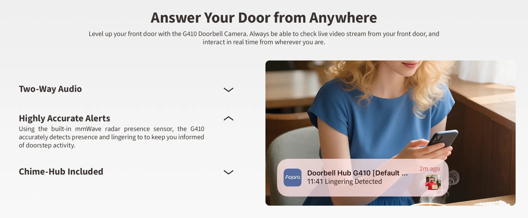 Detection: mmWave sensor for human detection; on-device AI facial recognition